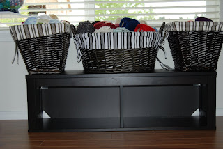 Don’t you just LOVE my new totes?!? I followed this tutorial that I found on Whipstitch. I struggled a little bit with the directions as far as the “box” corners go, but in the end they turned out really well. I had to change her measurements to fit my needs. If you would like to know my measurements to fit my shelf just let me know in the comments and I will send them to you!