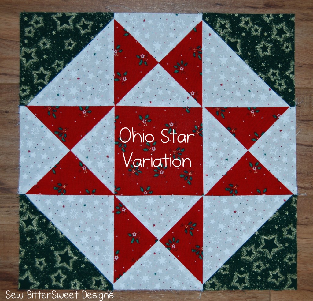 I call this a variation on the Ohio Star block because in the corners I added half square triangles (HSTs). I liked it because it allowed me to add a little more color to the block and it allowed me to add more visual interest. This block is part of my Vintage Christmas Sampler…which I am really hoping will be done before Christmas!