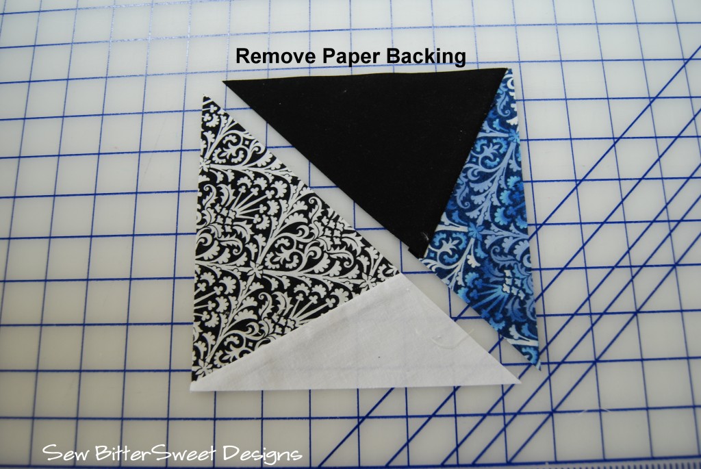 Remove your paper backing – if you are using the Carol Doak’s Foundation Papers, they will virtually fall off!  Don’t worry, with a small enough stitch length regular printer paper will come off fairly easily too.