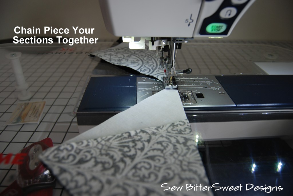 NOTE: It is important that you sew each piece in the order, I’ve listed – this will help you match up your seams when you piece your sections together!