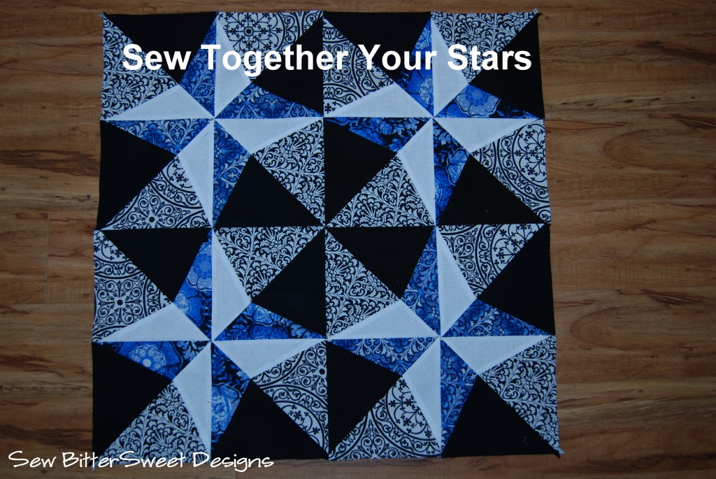 NOTE: When sewing your squares into blocks – it is more important that seams match up rather than the squares fit perfectly together. The seams matching up (interlocking together) is what will give you the perfect star points!