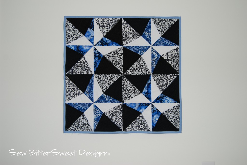 I especially love the last way of putting them together. I always like designs that make more than one possibility. The blue you used looks so great in the distance pictures, as if it’s flowing water. I didn’t realize until the close-up what kind of print it was!