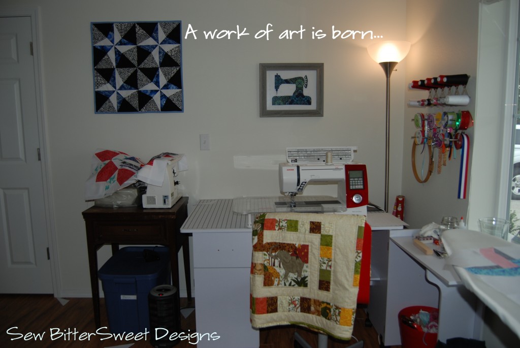 Time to quilt! I used black thread to quilt mine so it would blend in nicely. White would have stood out beautifully and made a great statement, but I wanted the quilting to blend.