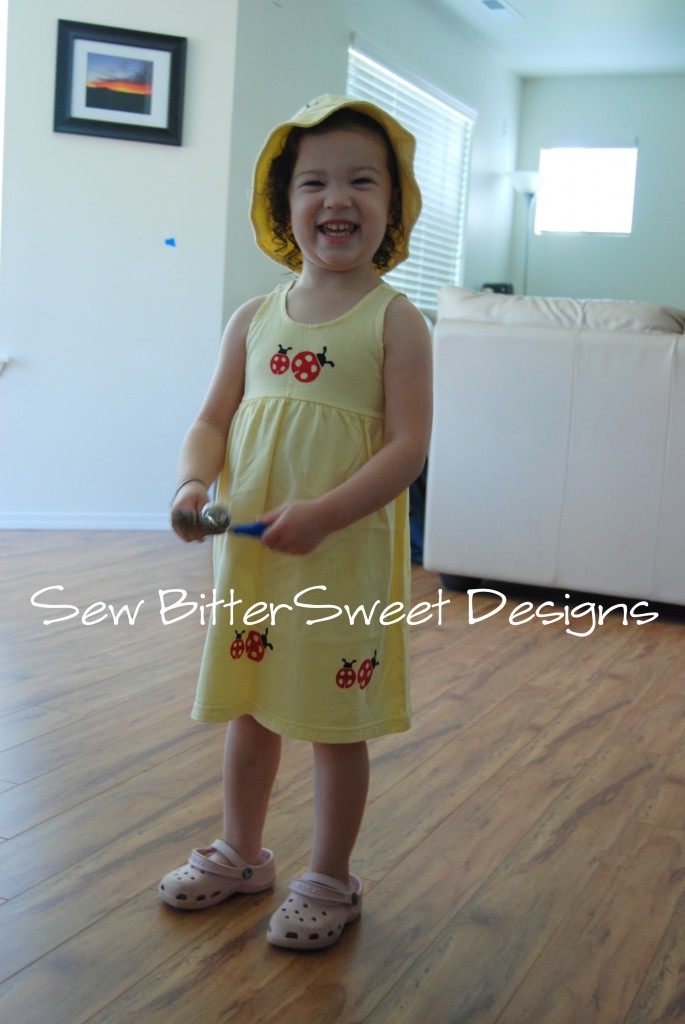 Anne looks so cute and happy, I think she likes berry picking! Cute little outfit and maybe you can applique over the stains! Enjoy your strawberries!