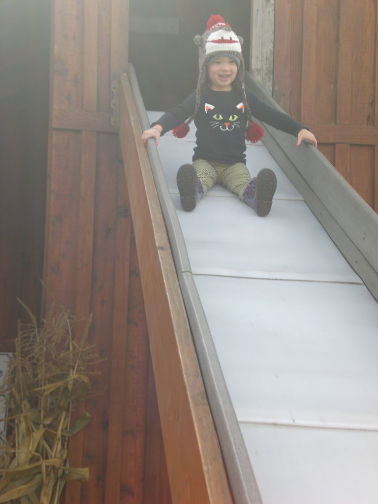 We got to Hunter’s Pumpkin Patch and the sun was shining brightly and it was so warm we left our raincoats in the car (are you seeing a problem…because I didn’t). We started out in the Hay Maze (smaller than the corn maze which guaranteed me that I wouldn’t have to carry a tired toddler back out).