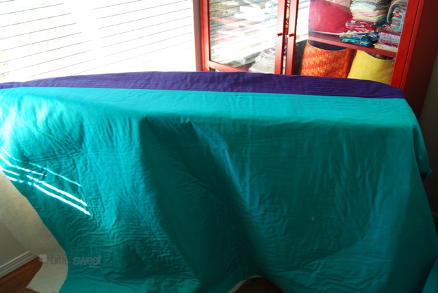 The quilt is already spray basted, now I just need an awesome quilting plan (I sort of have one in the back of my mind) and I need to bind it.