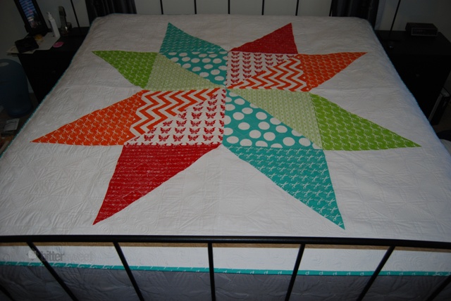 This is my backing. I decided to use some of my favorite fat quarters to make a gorgeous star and have a reversible quilt! I love it!